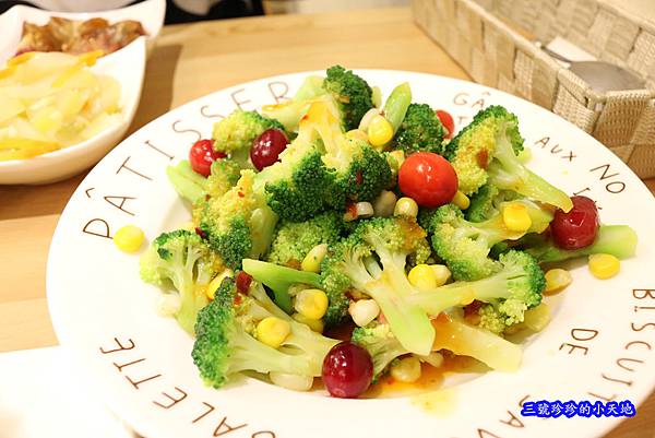 看似不怎麼起眼,只是堆滿了滿滿的青花菜/玉米粒,及些許的蔓越莓果粒點綴著,但是這道的精華在於盤底誘人的蔓越莓酸甜醬,爽脆的青花菜吸收了滿滿醬汁的精華,吃起來酸甜好開胃,如果你也是愛吃花椰菜的人,記得來貝芮小廚房千萬一定要點上一盤啊!不然你一定會後悔~
