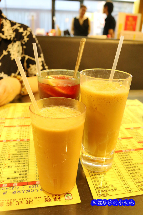 其實珍珍每次到祥發都是必點絲襪奶茶,覺得跟在香港當地喝的沒什麼差異;妞妞這次點的是鴛鴦奶茶,珍珍是沒有喝啦!聽她說沒有什麼味道,不好呵!@@至於凍檸檬利賓納就是檸檬加上黑加侖汁(也就是黑醋栗汁啦~).