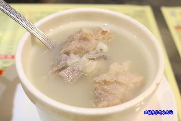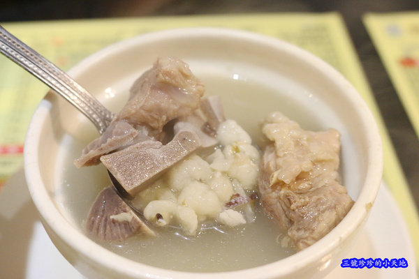 不知道這個每天是不是都會推出不同口味的湯品,這天喝到的是四神湯,是說祥發的四神湯熬煮的超好喝,有別於一般市面上販售的,湯頭喝起來很濃郁,有點稠稠的口感,感覺上整個大骨熬煮出來的膠質都在裡面了.
